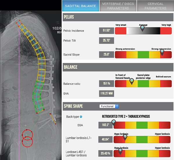 本病院では以前にT9-Iliac後方固定、L3PSOを施行されている症例のsagittal imbalanceに対して、T4からの再固定及び、L4PSOの手術を見学しました。 手術はまず助手のRobert先生と旅行参加者の和泉、斉木先生で始まり、展開が終わったところで、Gehrchen先生が登場しT4からの椎弓根スクリュー挿入を行いました。